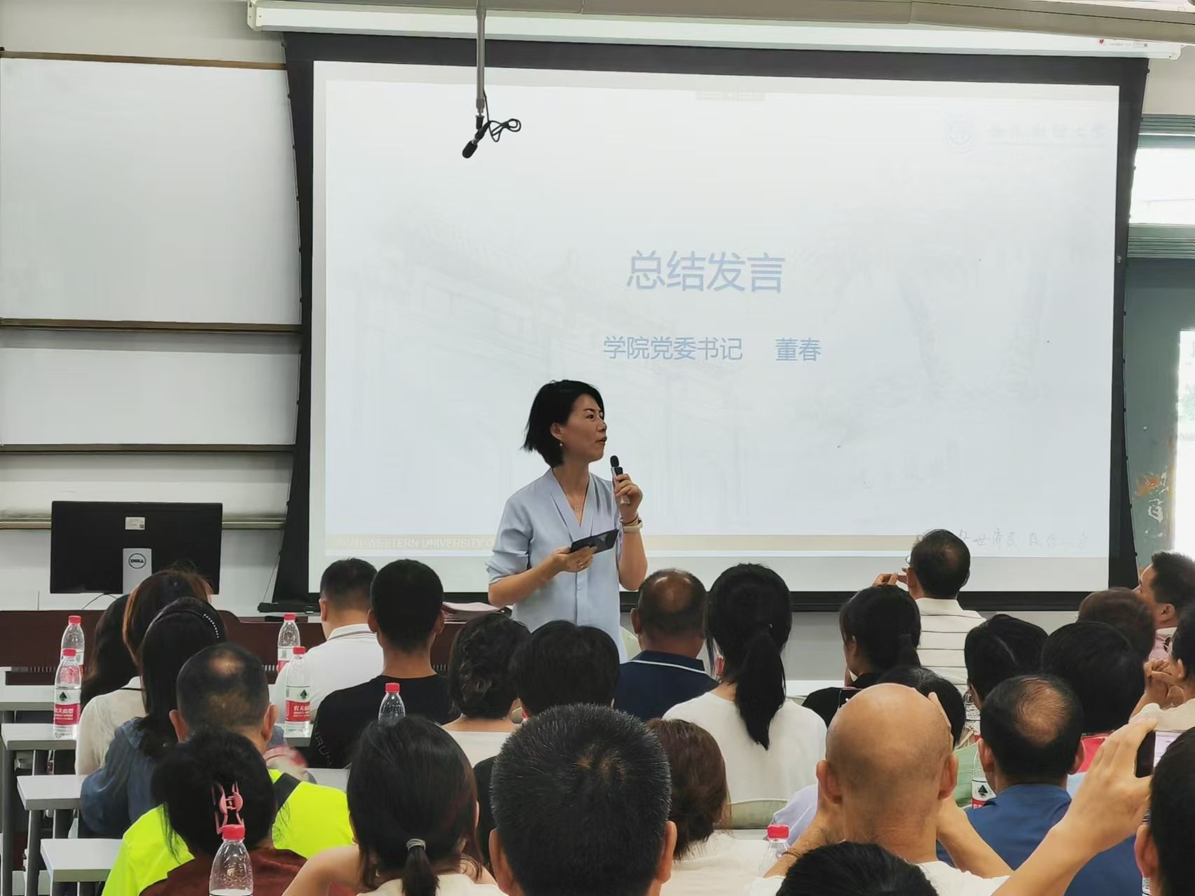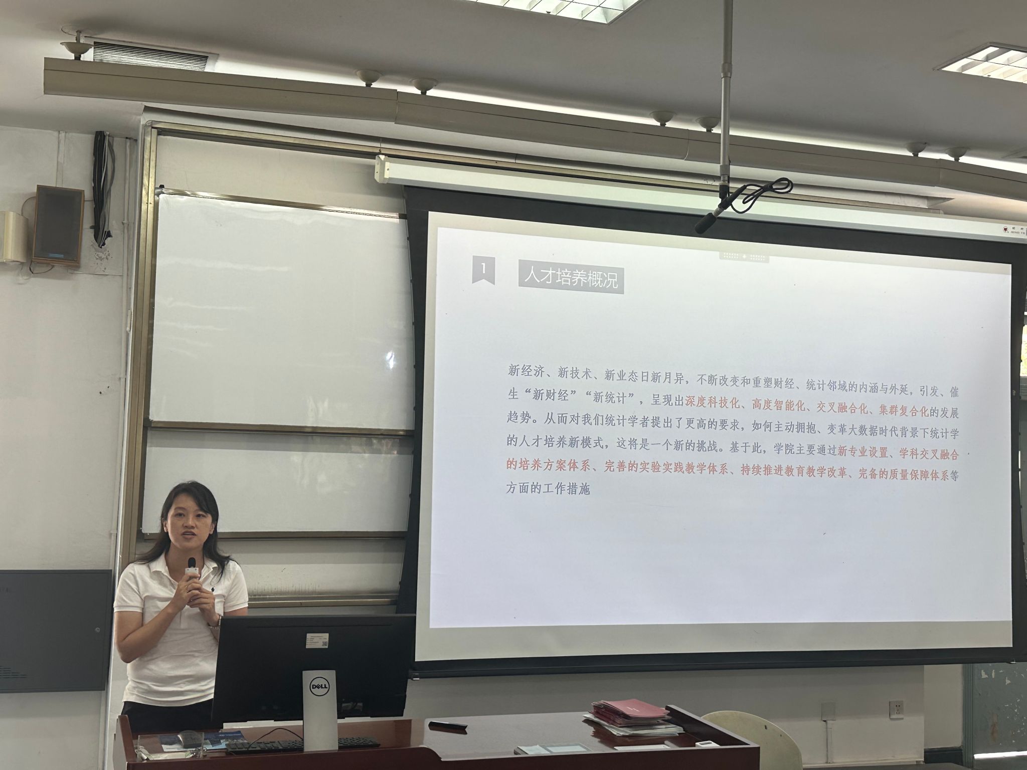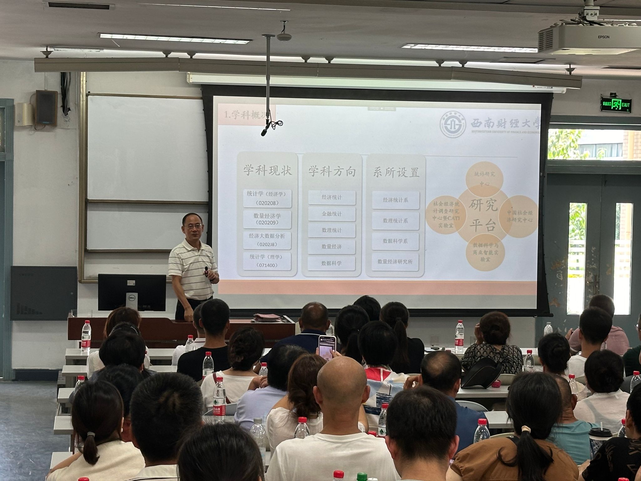 与到场家长做交流分享。从学院历史沿革、学科设置、专业建设、师资队伍、学生规模等方面进行逐一讲解,帮助家长们更全面深入了解西南财大统计学院,并强调了在大一务必打好基础,学会自我管理。