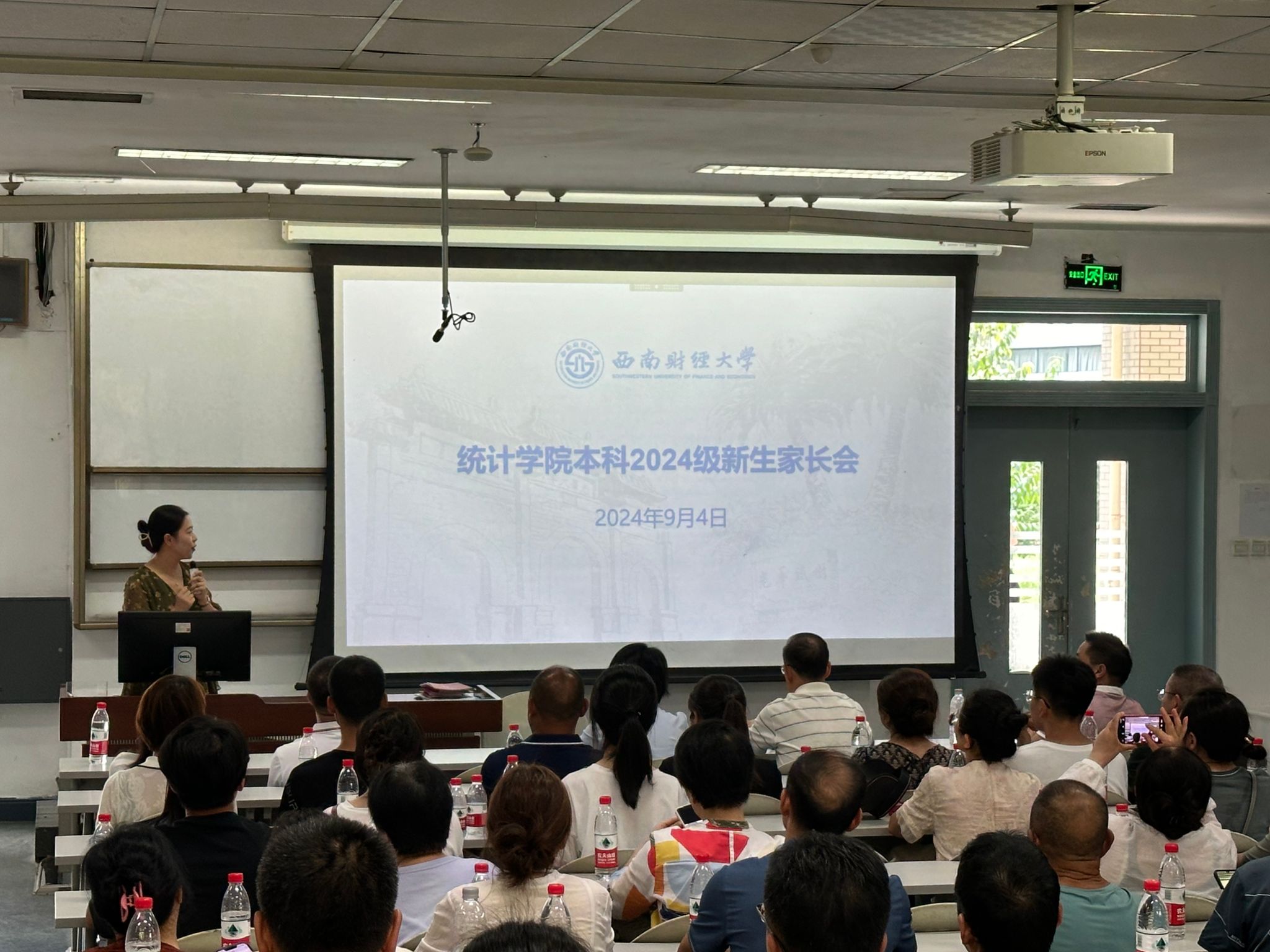 9月4日下午, 统计学院“家校同携手,共筑成长路”2024级新生家长会在柳林校区F104教室召开。统计学院院长郭建军,党委书记董春,副院长马丹、兰伟,辅导员朱晨晨出席会议,近200名新生家长到场参与。
