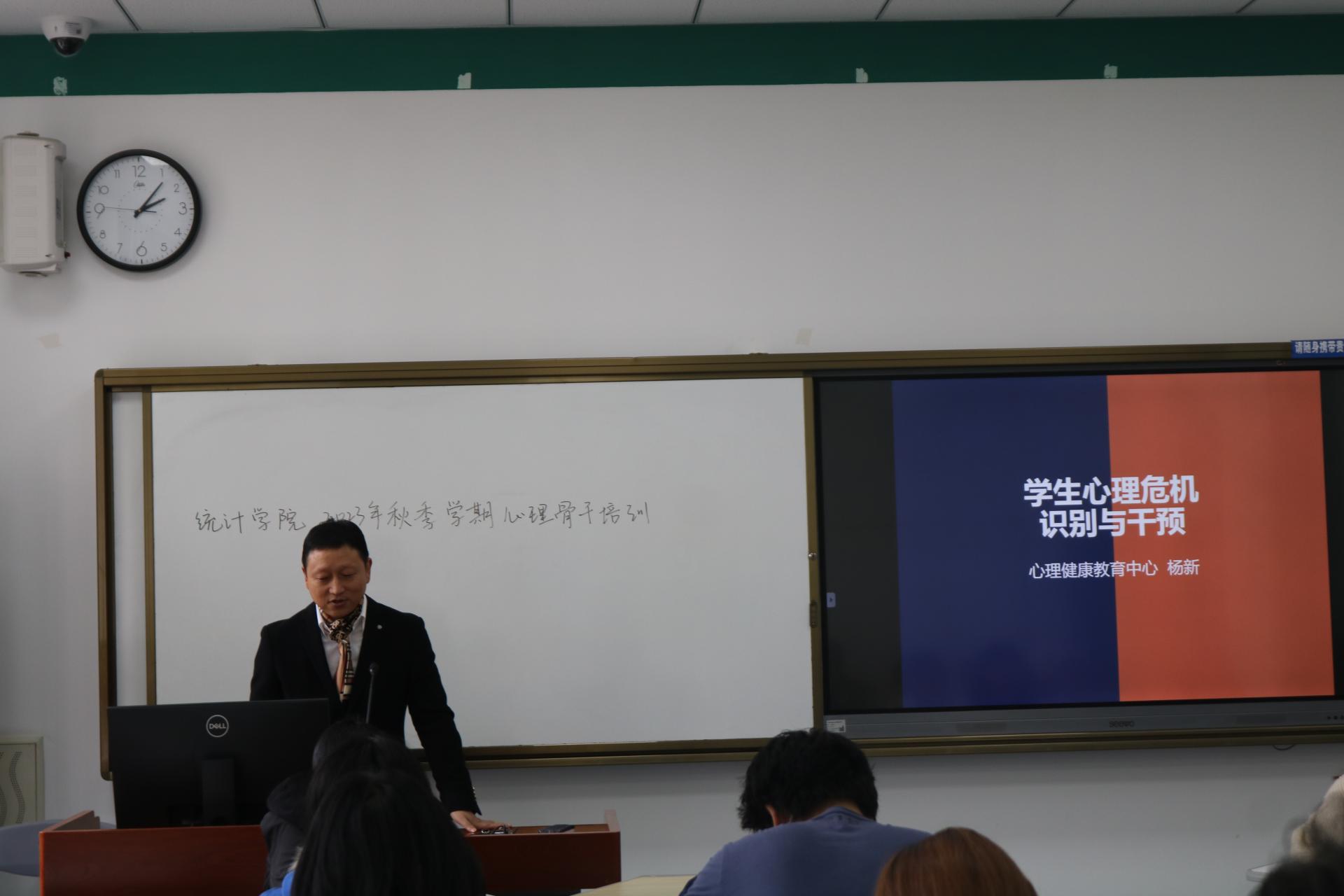统计学院心灵翱翔社邀请心理健康教育中心杨新老师作为主讲老师,面向学院全体心理委员、寝室长等心理骨干在经世楼B207举办了2023年秋季学期学生心理骨干培训。