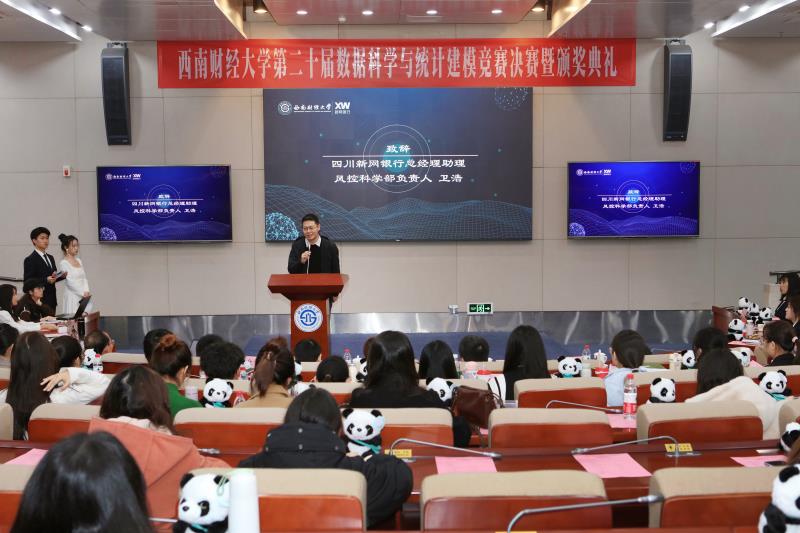 第二十届数据科学与统计建模竞赛决赛在弘远楼101会议厅举行。新网银行总经理助理、风控科学部负责人卫浩先生,电子科技大学蒲晓蓉教授、成都理工大学刘浏教授、朱古力av