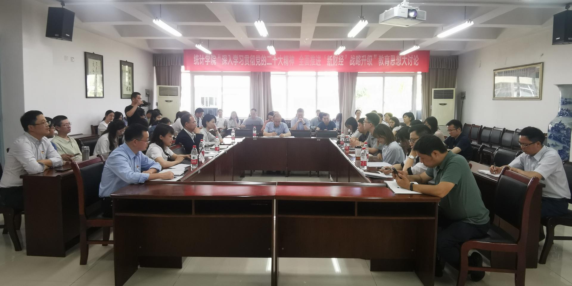 为学习贯彻落实党的二十大精神和学校十三届五次党代会精神,4月18日下午,统计学院在通博楼B212举行了“新财经“战略升级教育思想大讨论集中研讨会,党委副书记、副校长李永强,发展规划处处长李雪出席会议,学院全体教职工参加会议。