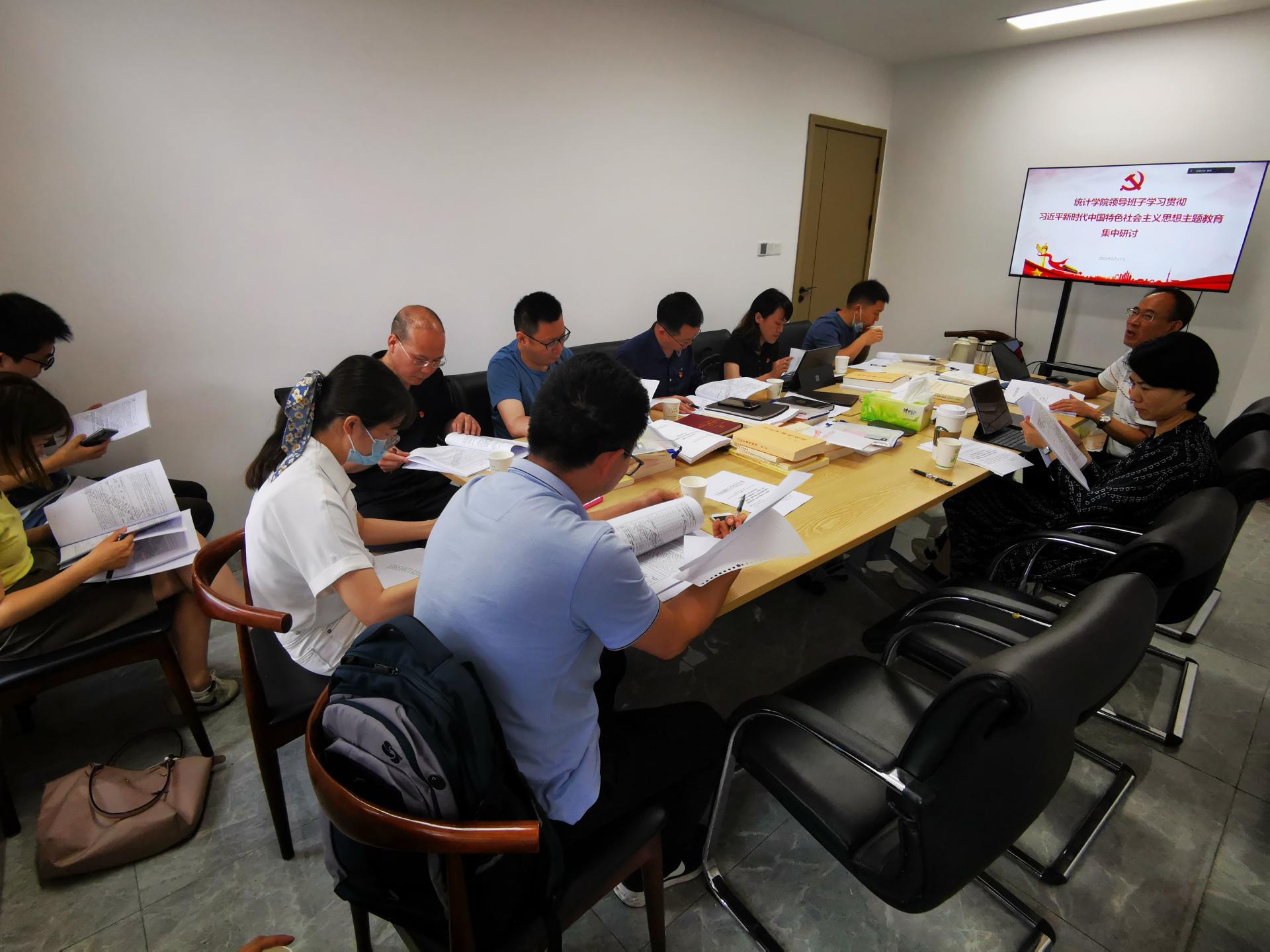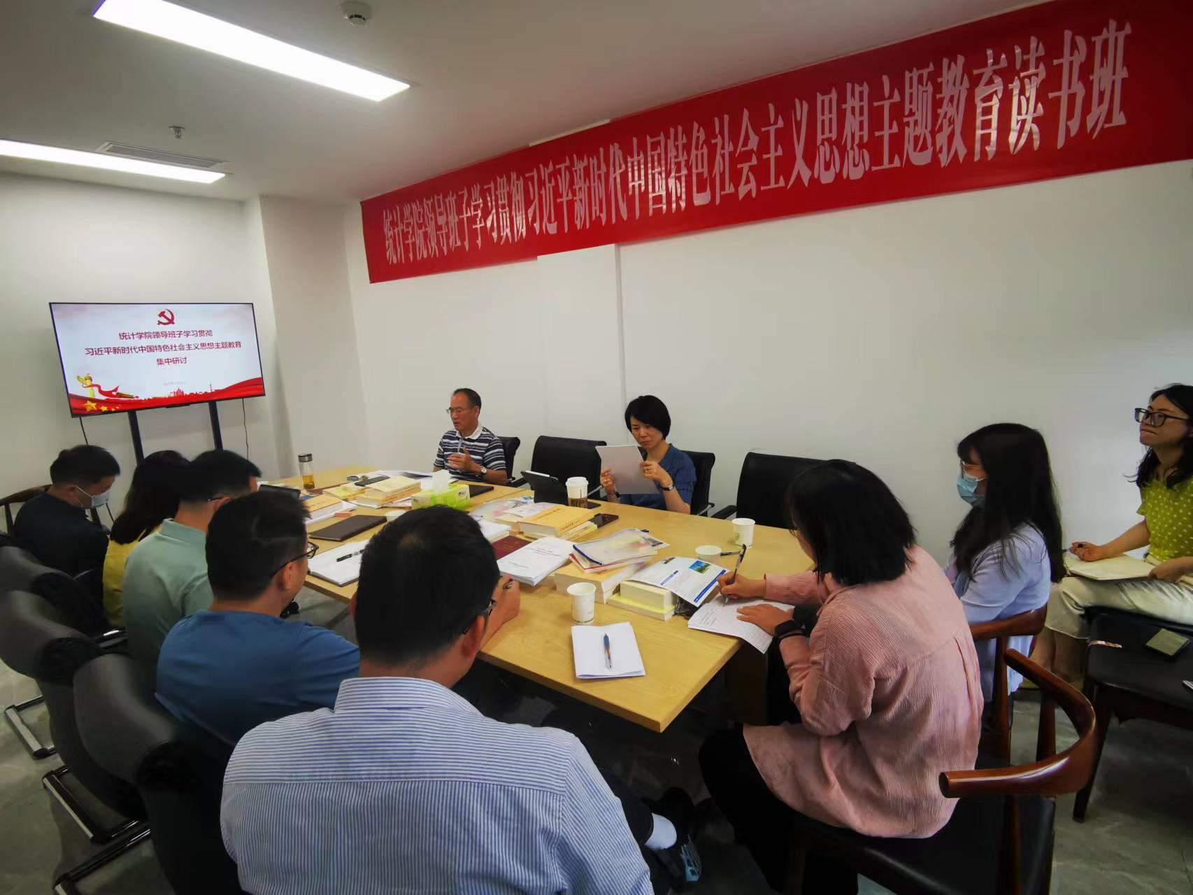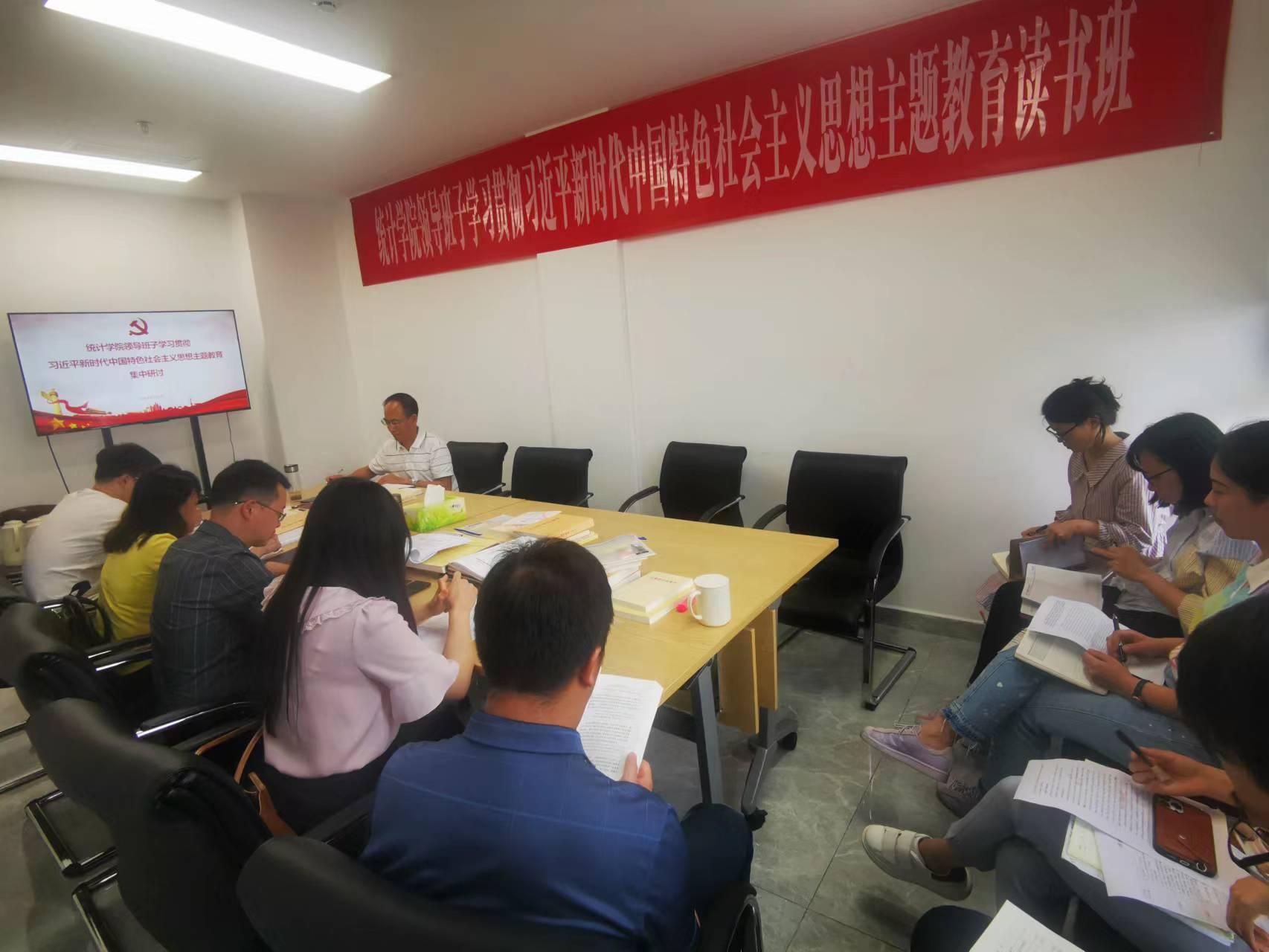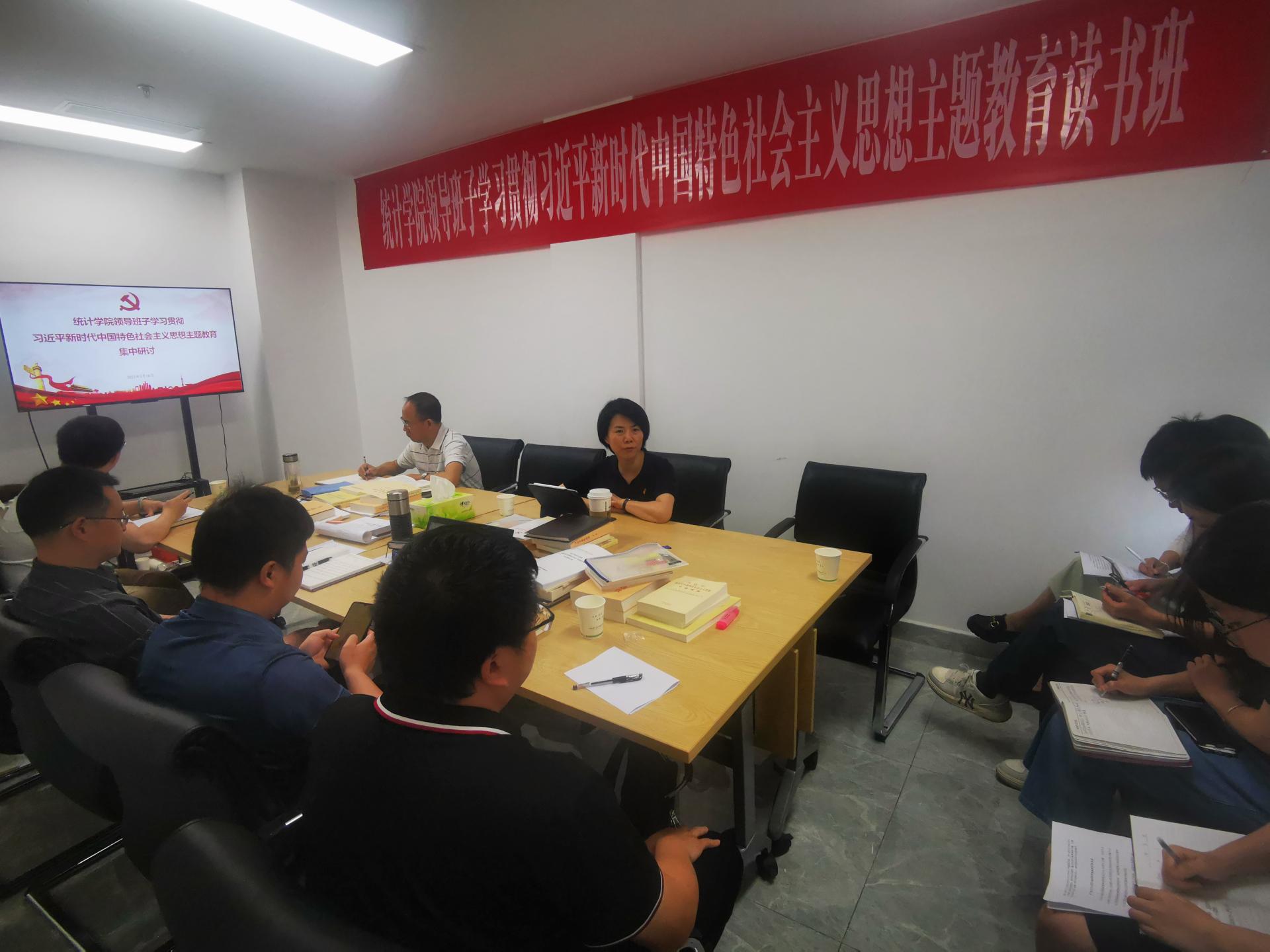 5月15日至18日,统计学院结合理论学习中心组学习,在诚正楼1332会议室扎实开展学习贯彻习近平新时代中国特色社会主义思想主题教育集中研讨交流,全面系统深入学习习近平新时代中国特色社会主义思想的科学体系、精髓要义和实践要求,着力在以学铸魂、以学增智、以学正风、以学促干上下功夫见实效,切实把习近平新时代中国特色社会主义思想转化为坚定理想、锤炼党性和指导实践、推动工作的强大力量。集中研讨突出“五聚焦五强化”,围绕“五大专题”认真交流学习体会。学院党委书记、主题教育领导小组组长董春主持研讨会。