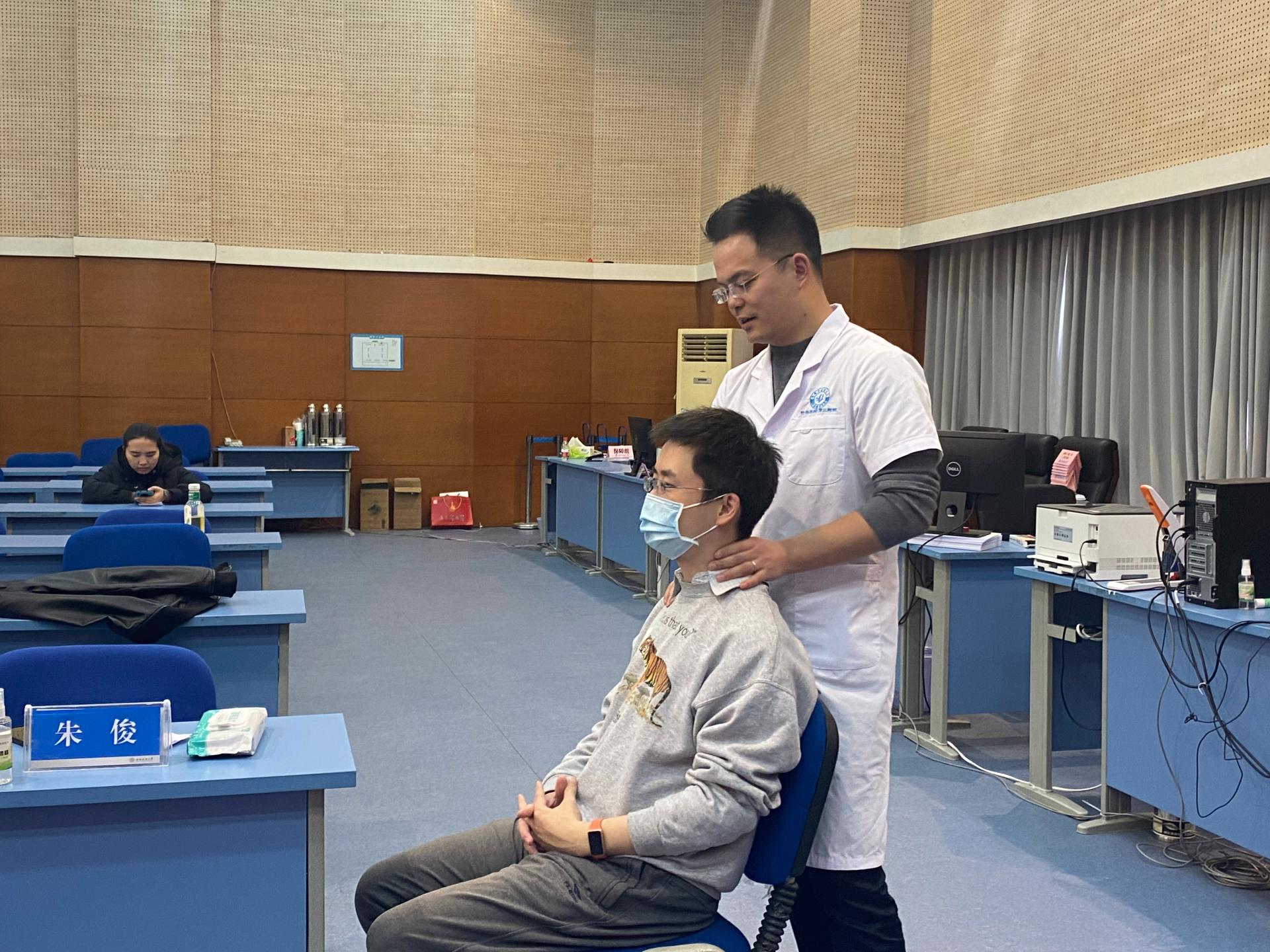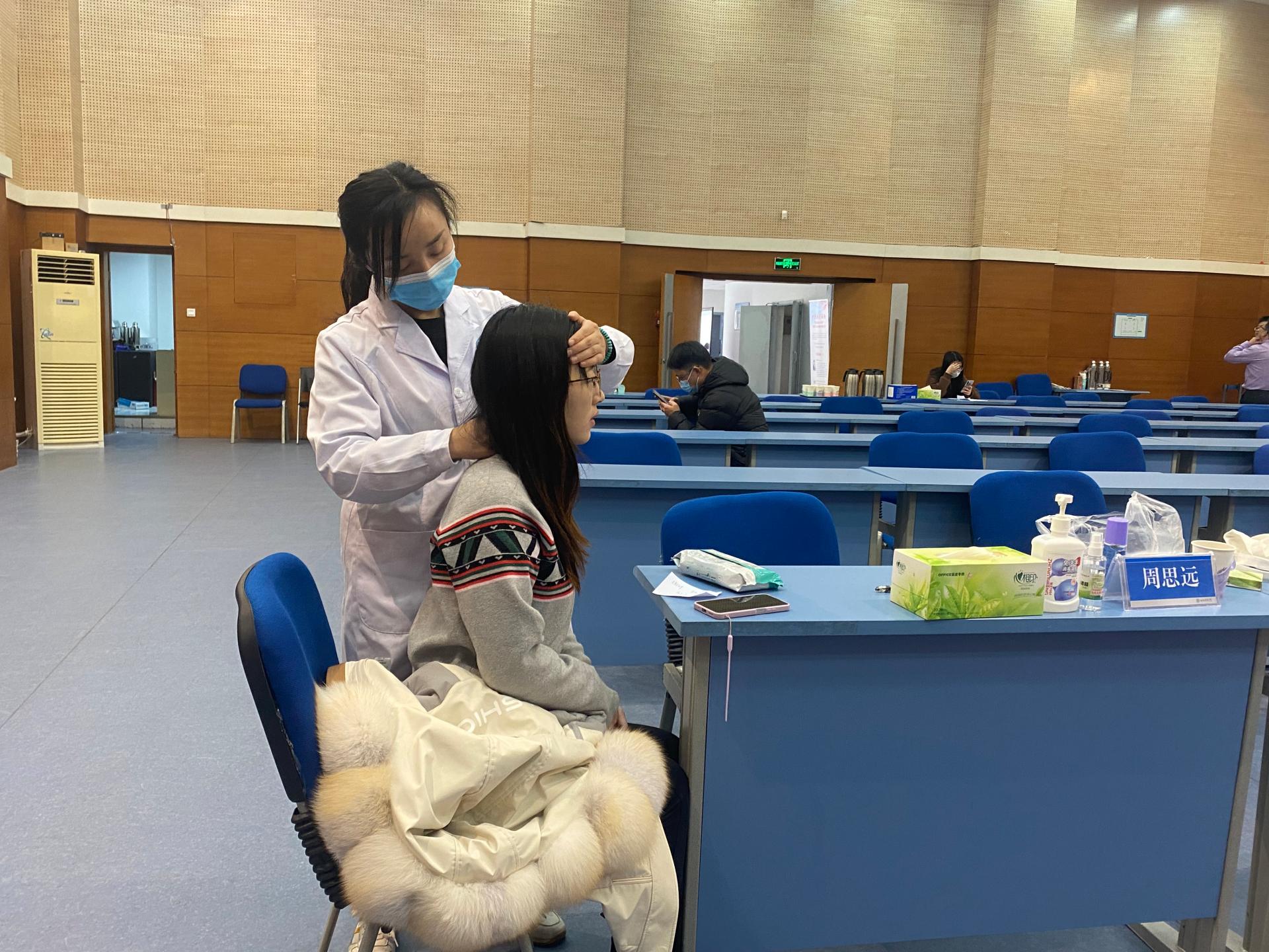 为深入开展党史学习教育,进一步推进“我为群众办实事”实践活动,促进教职工身心健康提升计划的实施,2021年12月9日,统计学院与公共管理学院联合邀请了来自成都中医药大学针灸推拿学院的周思远和朱俊两位专家为全校教师开展进校诊疗服务。20多位来自不同学院的老师按照各自预约的时间来到学生活动中心多功能厅,根据自身需求分别到针灸或推拿的两位专家处问诊。