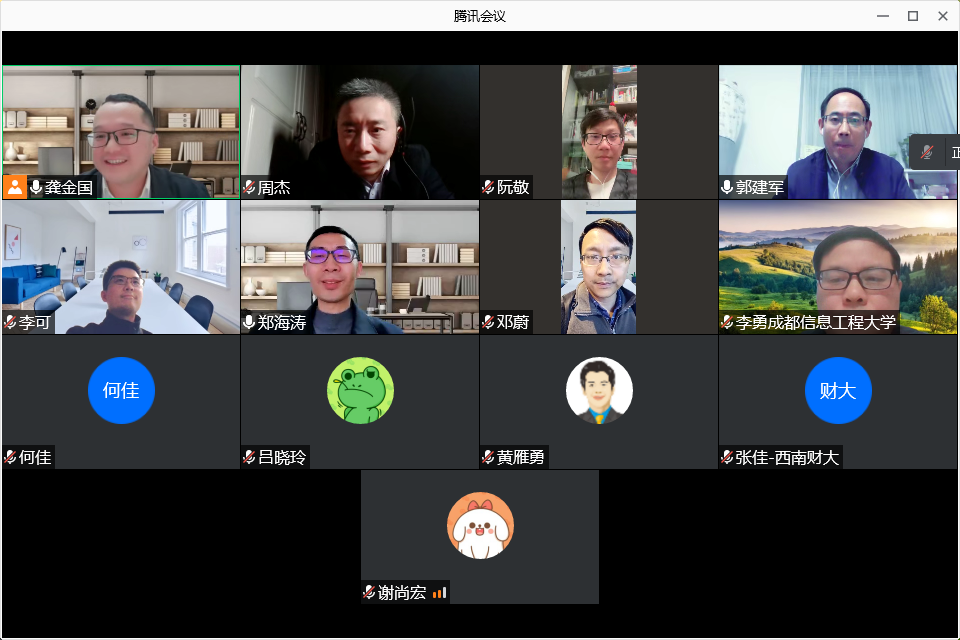 4月2日晚,统计学院教学副院长龚金国教授组织召开了线上的新增专业专家评审会议,来自首都经济贸易大学、中国人民大学、四川大学、西南交通大学和成都信息工程大学的五位评审专家、统计学院院长郭建军教授、数据科学系系主任李可副教授以及部分教师代表参与了会议。
