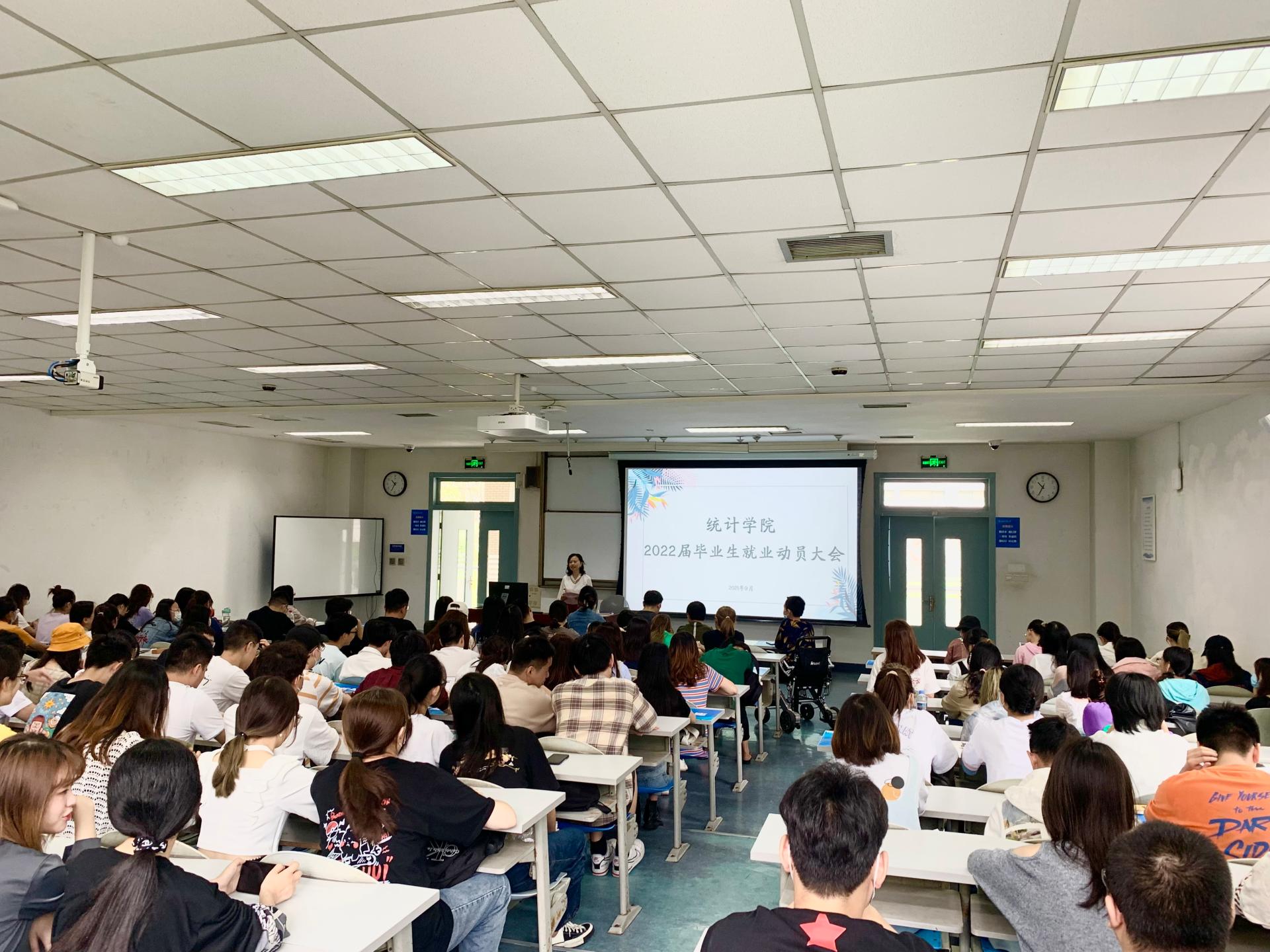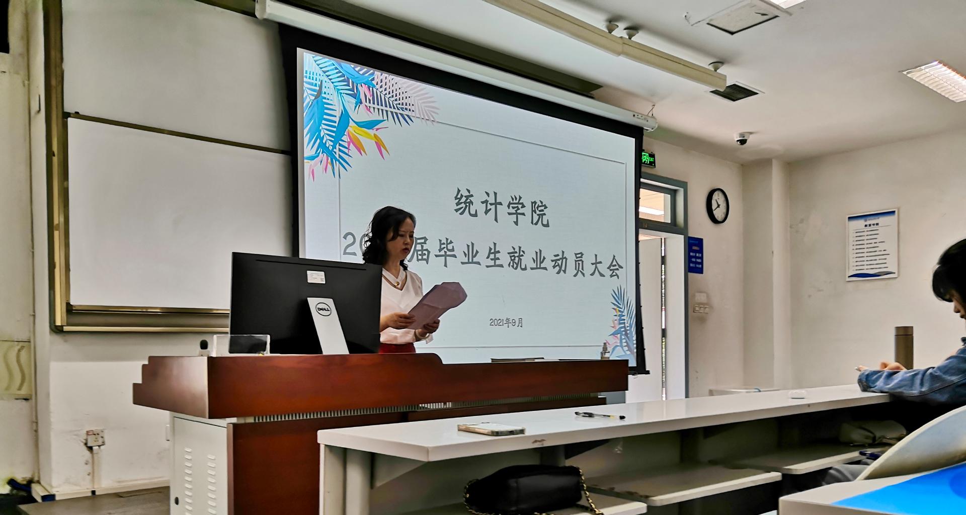 2021年9月27日上午,统计学院在经世楼F102召开了2022届毕业生就业动员大会,统计学院分党委副书记彭晓蓉、毕业班辅导员、教学秘书参加了此次会议。会议由毕业班辅导员甘筑夏主持。
