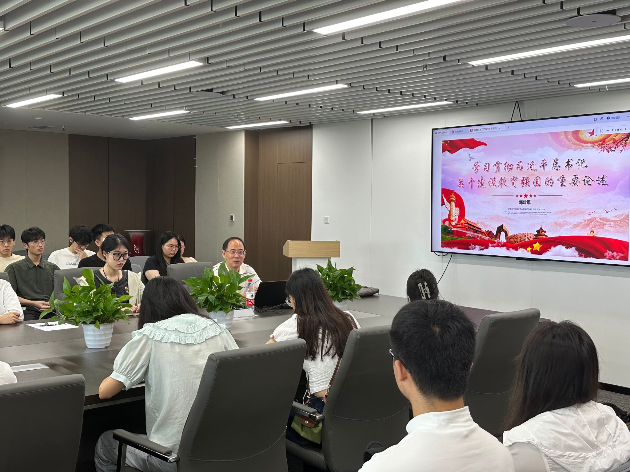 2024年6月25日上午11点,统计学院院长郭建军教授以《学习贯彻习近平总书记关于建设教育强国的重要论述》为主题为学生讲授思政课,学院本科生第一、二党支部,研究生第三党支部共50余人在诚正楼13楼会议室参加了此次课程。