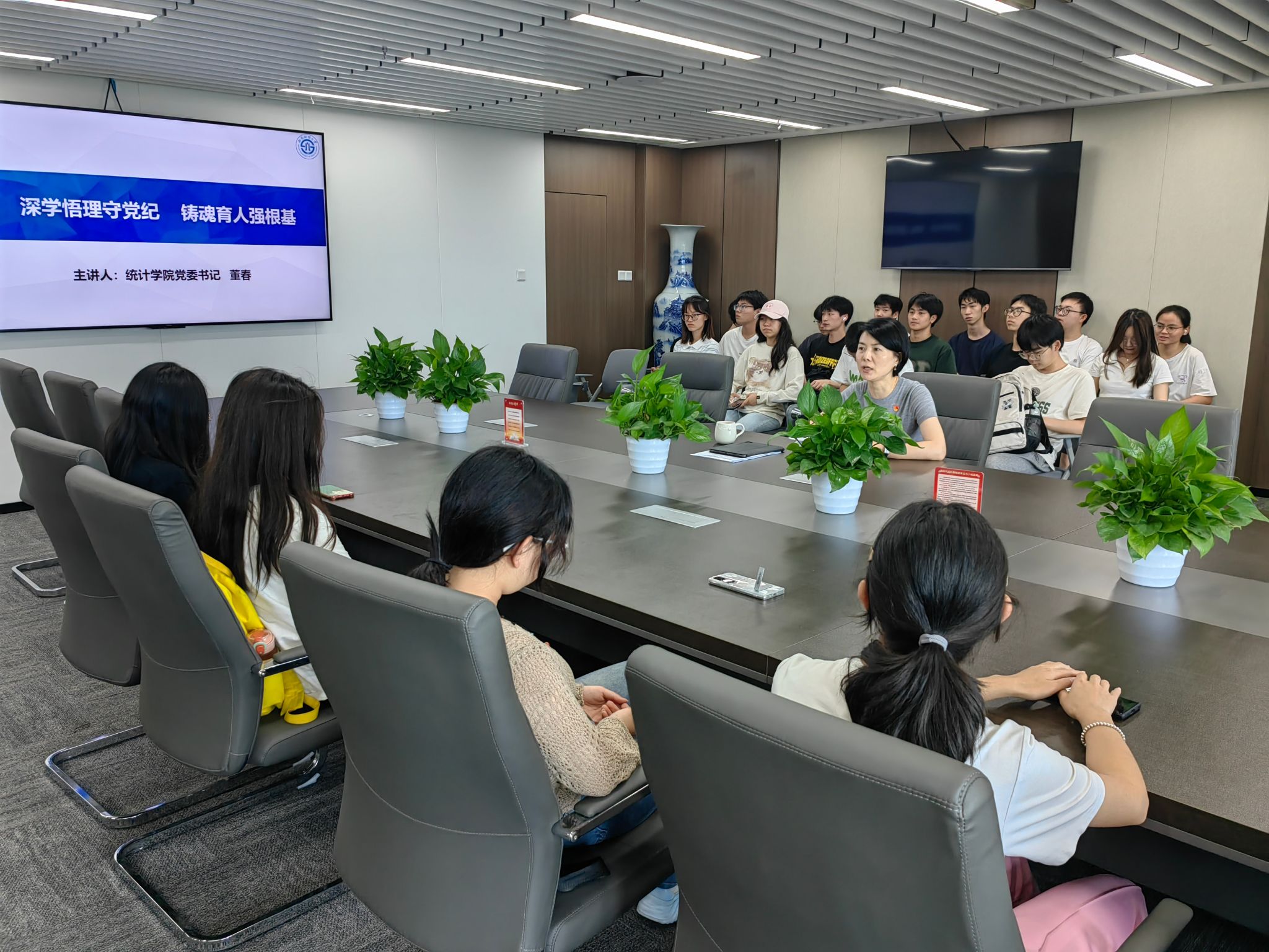为深入开展党纪学习教育,推进新时代廉洁文化建设,2024年6月11日下午3点,统计学院党委书记董春在诚正楼13楼会议室以“深学悟理守党纪,铸魂育人强根基”为主题,为学院本科生讲授思政课。