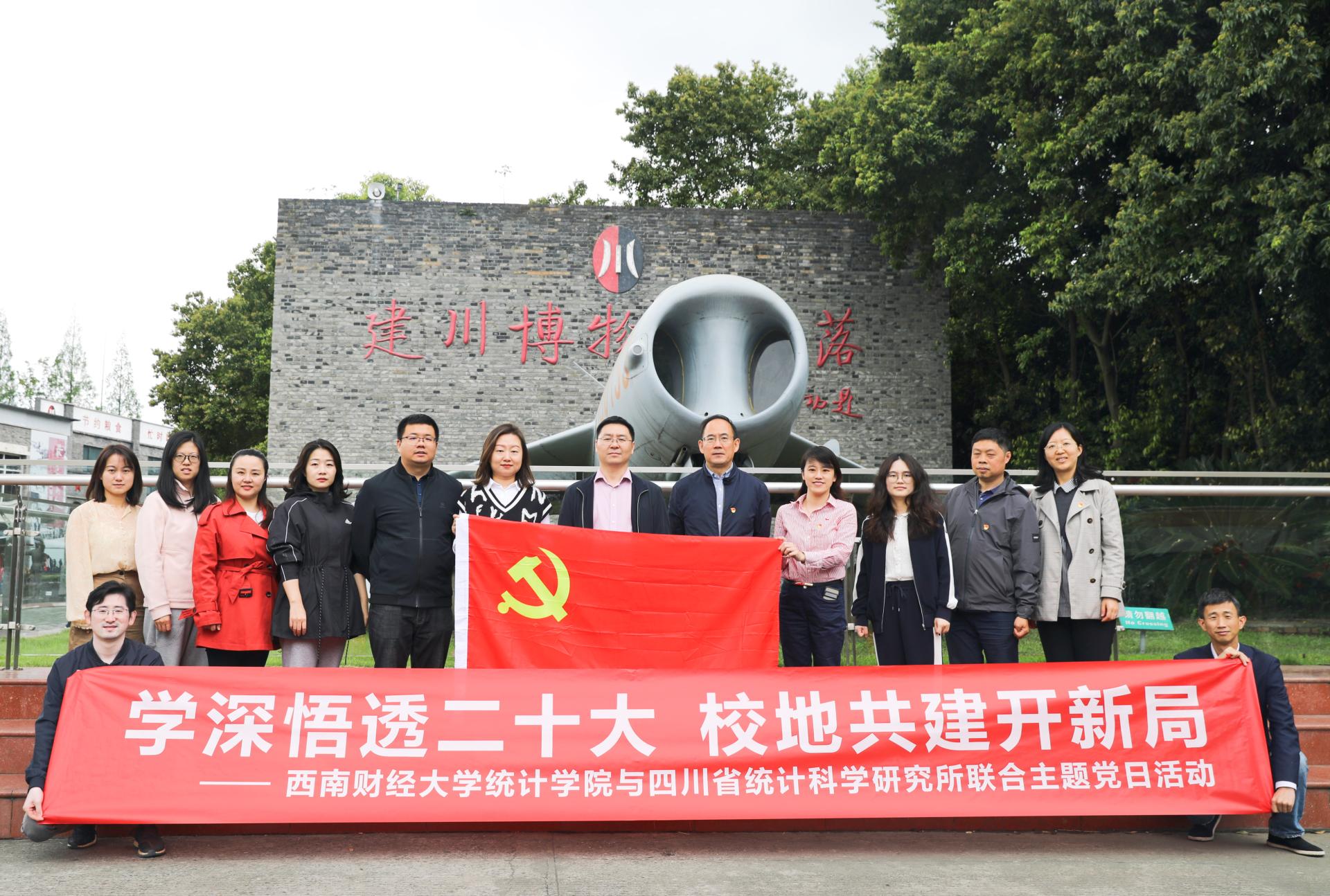 统计学院教工第一党支部和四川省统计科学研究所党支部开展以“学深悟透二十大、校地共建开新局”为主题的联合主题党日活动。统计学院教教工第一党支部党员在院长郭建军、四川省统计科学研究所党支部党员在所长周作昂的带领下,前往建川博物馆参观学习,回顾我们党砥砺奋进的百年奋斗历程。