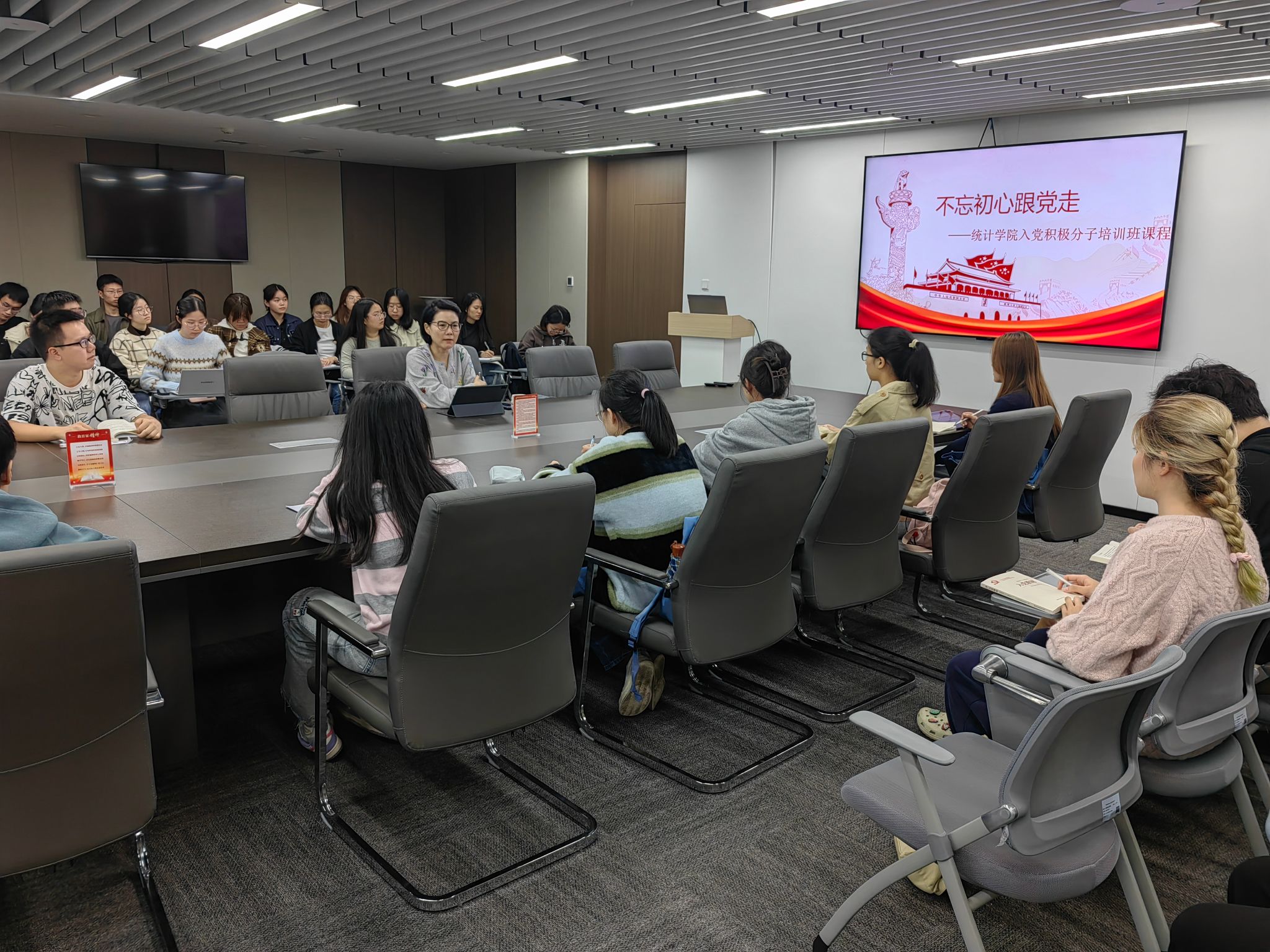 统计学院入党积极分子培训班党课在诚正楼13楼会议室开展,本次课程由学院党委书记董春主讲。