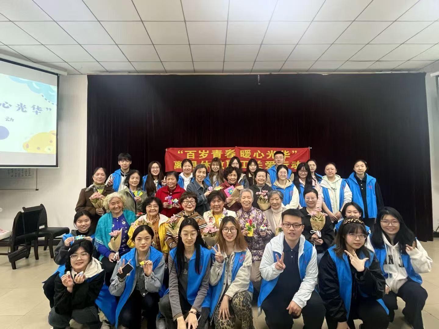 活动临近尾声时,离退休教职工们与志愿者们共同举起精心制作的手工艺品。这些凝聚着两代人智慧与创意的手工作品,在灯光下闪耀着独特的光芒。随着整齐的一声“茄子!”响起,这一刻的美好被永远定格——银发与青春同框,传统与创新交融,为这场充满温情的跨代交流活动描绘出最动人的句点。镜头中,每个人脸上都洋溢着满足的笑容,这不仅是一次活动的圆满结束,更象征着精神传承的美好开端。