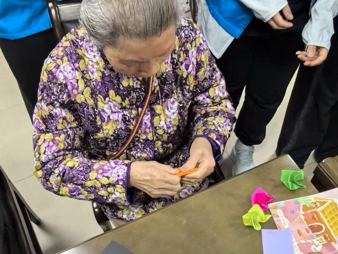 纸艺传情区,志愿者们正耐心示范折纸技法,只见彩纸在指间轻盈舞动,转眼间便幻化成栩栩如生的纸鹤、花朵等精美作品,引得在场众人连连赞叹。