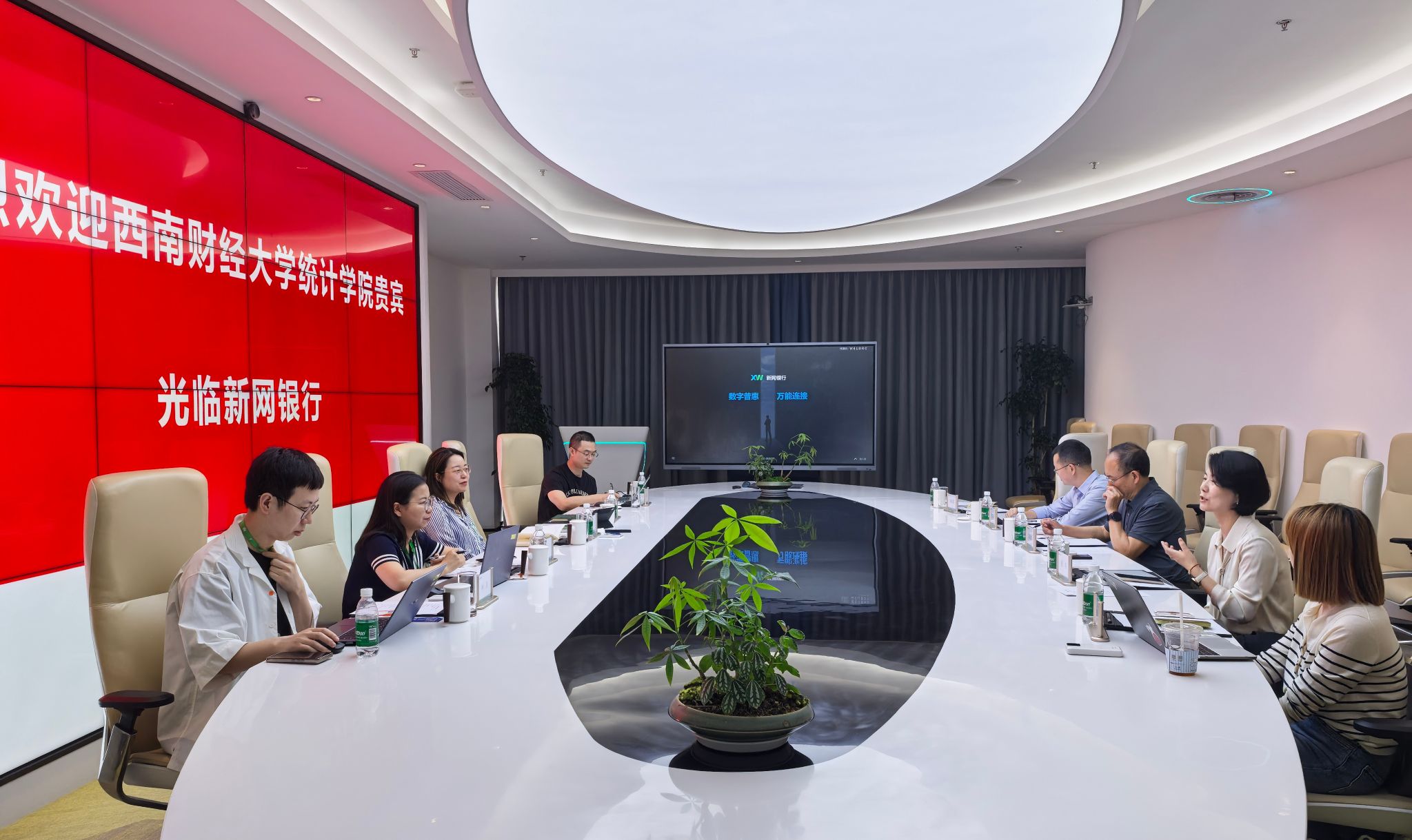 走访过程中,学院一行深入了解新网银行在金融科技、数字风控等领域的前沿技术应用,并与企业人力资源部及风控科学部负责人座谈交流,重点围绕企业人才需求结构、产学研协同创新、学生联合培养等方面展开讨论。新网银行行长助理、人力行政总监杨樊表示,随着金融数字化转型加速,具备扎实专业基础、创新思维和实践能力的复合型人才需求旺盛,希望与学院加强现有合作,拓宽合作领域,共同探索定制化培养、项目制实践等协同育人新模式。