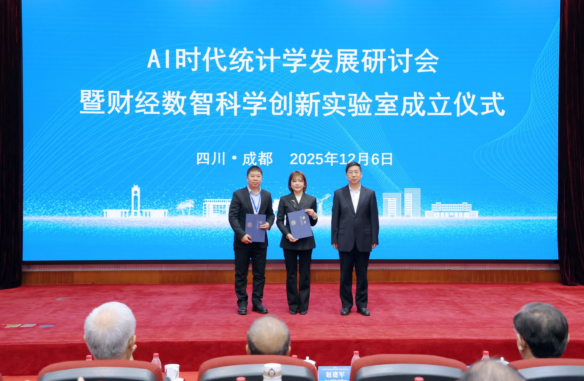 关于成立“财经数智科学创新实验室”的决定》。文兼武,邱东,赵建军,李永强,国家统计局一级巡视员康君,国家统计局科研所首席研究员许亦频,四川省统计局党组书记、局长曾俊林,中国劳动关系学院校长傅德印,内蒙古财经大学原校长杜金柱,国务院学位委员会统计学科评议组召集人、中国人民大学统计学院原院长王晓军共同为实验室揭牌。赵建军为实验室建设管理委员会委员,学术与技术委员会委员,以及实验室主任、执行主任颁发聘书。实验室主任兰伟教授就实验室建设目标、研究方向与发展规划作了汇报。