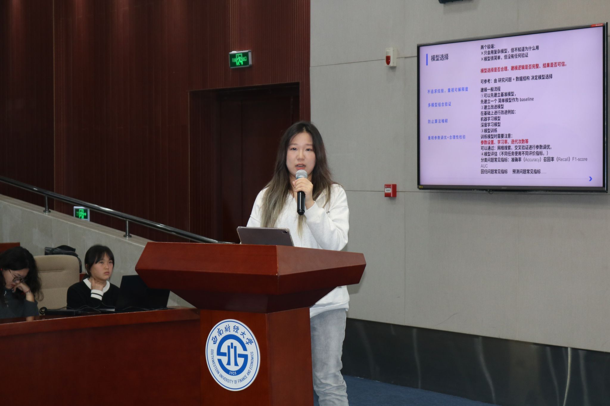 数理统计系教授、博士生导师吴量,第十一届全国大学生统计建模大赛全国一等奖获得者、金融学院2022级本科生张皓竣,以及同为一等奖得主的计算机与人工智能学院2023级本科生杨蕴涵。三人分别从论文写作、数据处理和选题思路三个维度,带来了实实在在的“干货”。