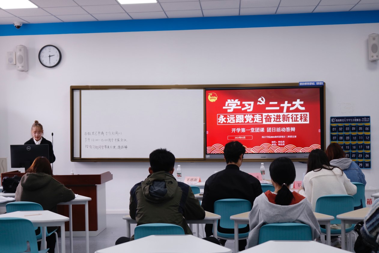 为深入学习贯彻党的二十大精神,加强青年团员思想理论学习,提高青年团员政治素养,在校团委的指导下,统计学院各团支部开展2022-2023学年第二学期“学习二十大、永远跟党走、奋进新征程”团日活动。