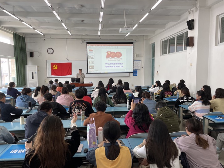 伍老师以三个问题:为什么建党、建什么样的党和如何建设这样的党,引出本次党课的主题,通过互动问答,启发现场师生积极思考。伍老师通过深刻分析上个世纪一二十年代我国的社会实际状况和国际形势,指出了中国共产党的建立是历史必然。我国的仁人志士和热血青年都被马克思主义所吸引,悟出来真理的味道,也找到了中华民族伟大复兴的唯一出路。但是,道路不是一帆风顺的,经历了很多艰难险阻。伍老师通过“一大”开会时的艰苦条件、南昌起义失败的百折不挠和四渡赤水的惊心动魄等历史事实,告诫现在的年轻党员,成功是多么来之不易,信念是多么坚定不移。在伍老师生动的讲解下,一张张图片,一件件史实,让大家的学习变得津津有味,意犹未尽。